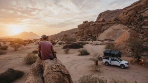 Nuestro siguiente destino es Spitzkoppe, conocida como “la Matterhorn de Namibia”. Aquí acamparemos en nuestras tiendas sobre los 4×4, rodeados de formaciones graníticas que brillan con la luz del atardecer.