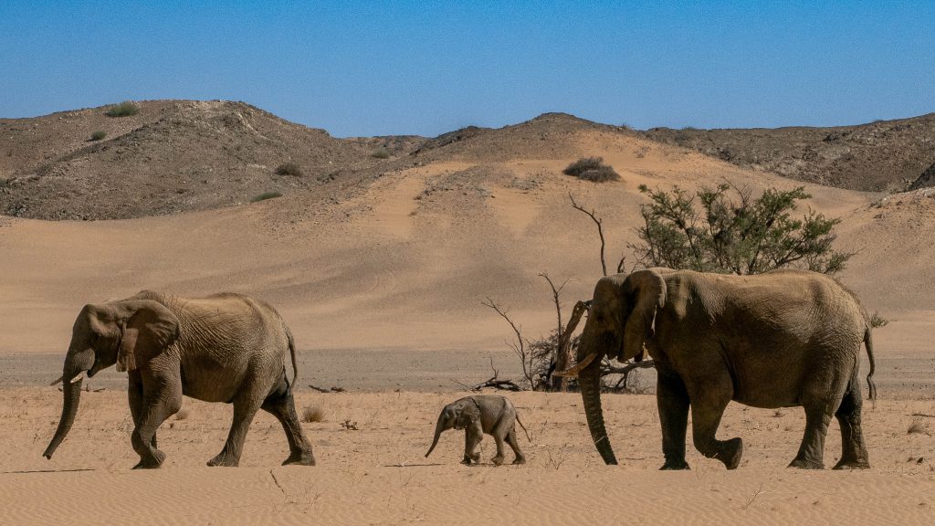 Haremos excursiones fotográficas para intentar localizar las manadas de elefantes adaptados al desierto, además de oryx, cebras y jirafas. Un entorno que combina la grandeza del paisaje con la emoción de la fauna en libertad.