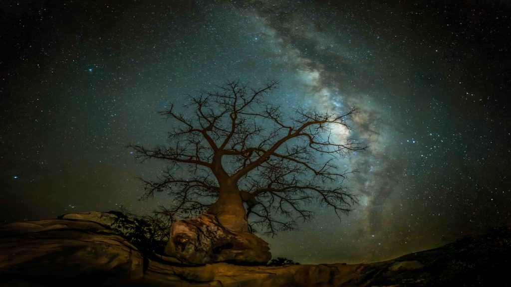 Tendremos la oportunidad de visitar un poblado Himba, y por la noche los baobabs serán los protagonistas para nuestras vías lácteas, con sus formas y raíces con el cielo estrellado de fondo.